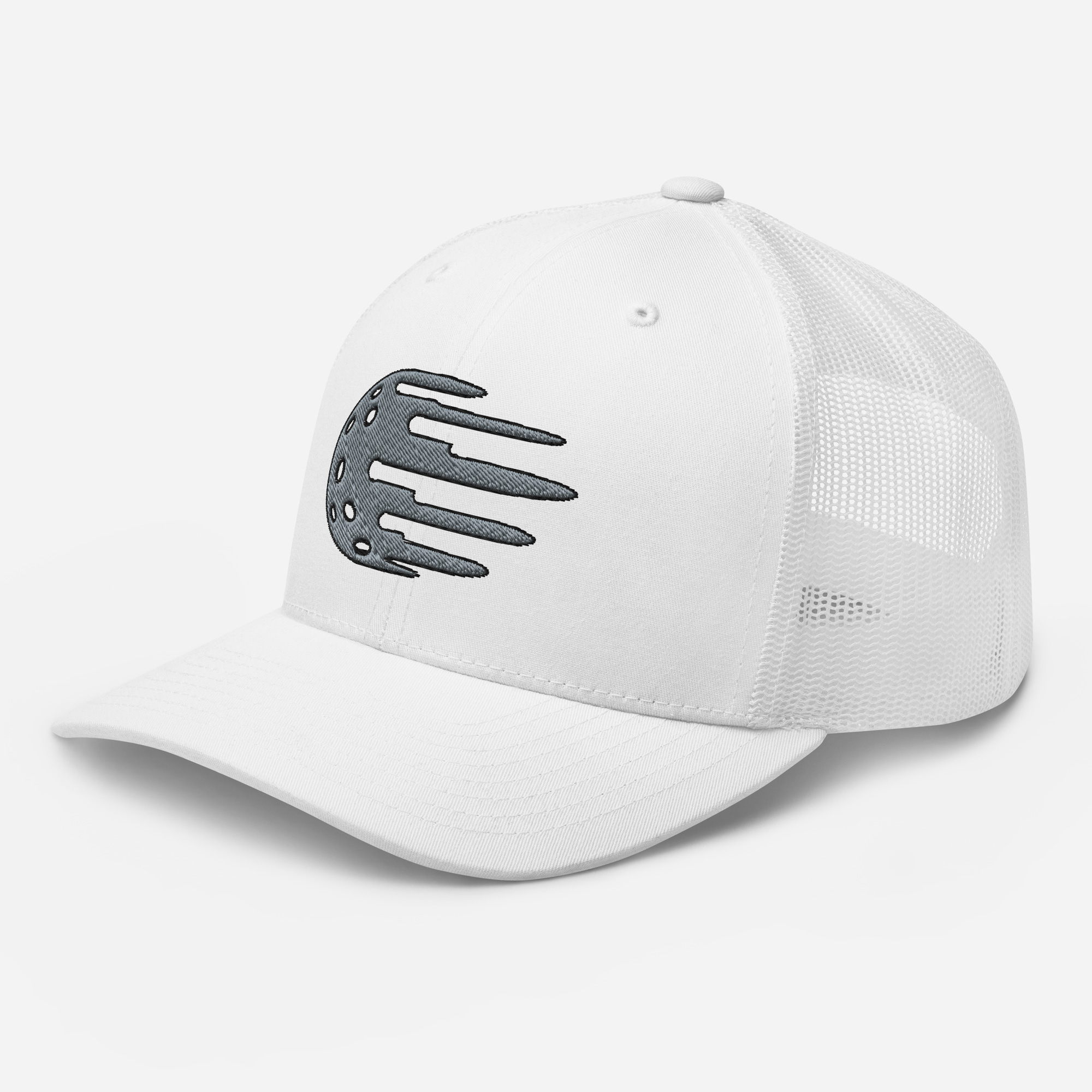 Men's white, gray banger logo, snap back hat. Feels soft and light with just the right amount of stretch.