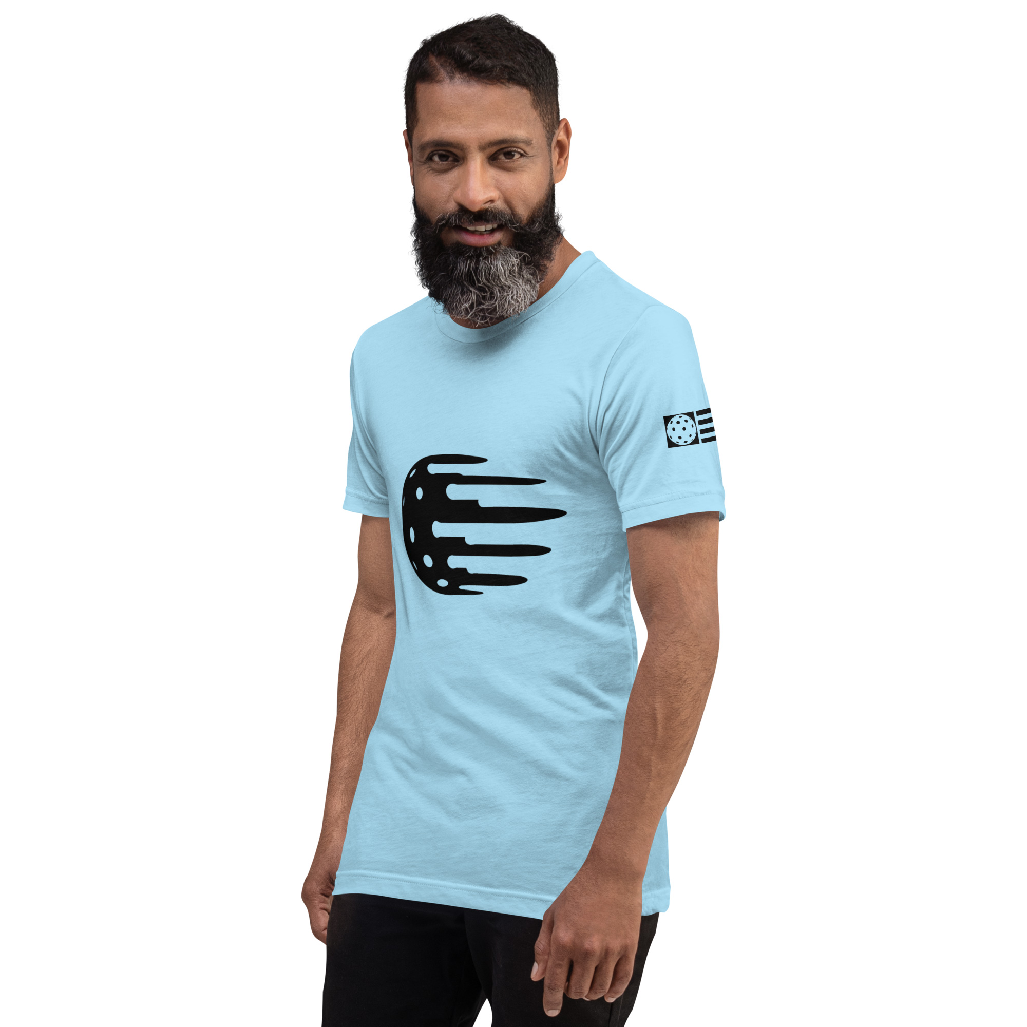 Men's light blue t-shirt, black logo feels soft and light with just the right amount of stretch.