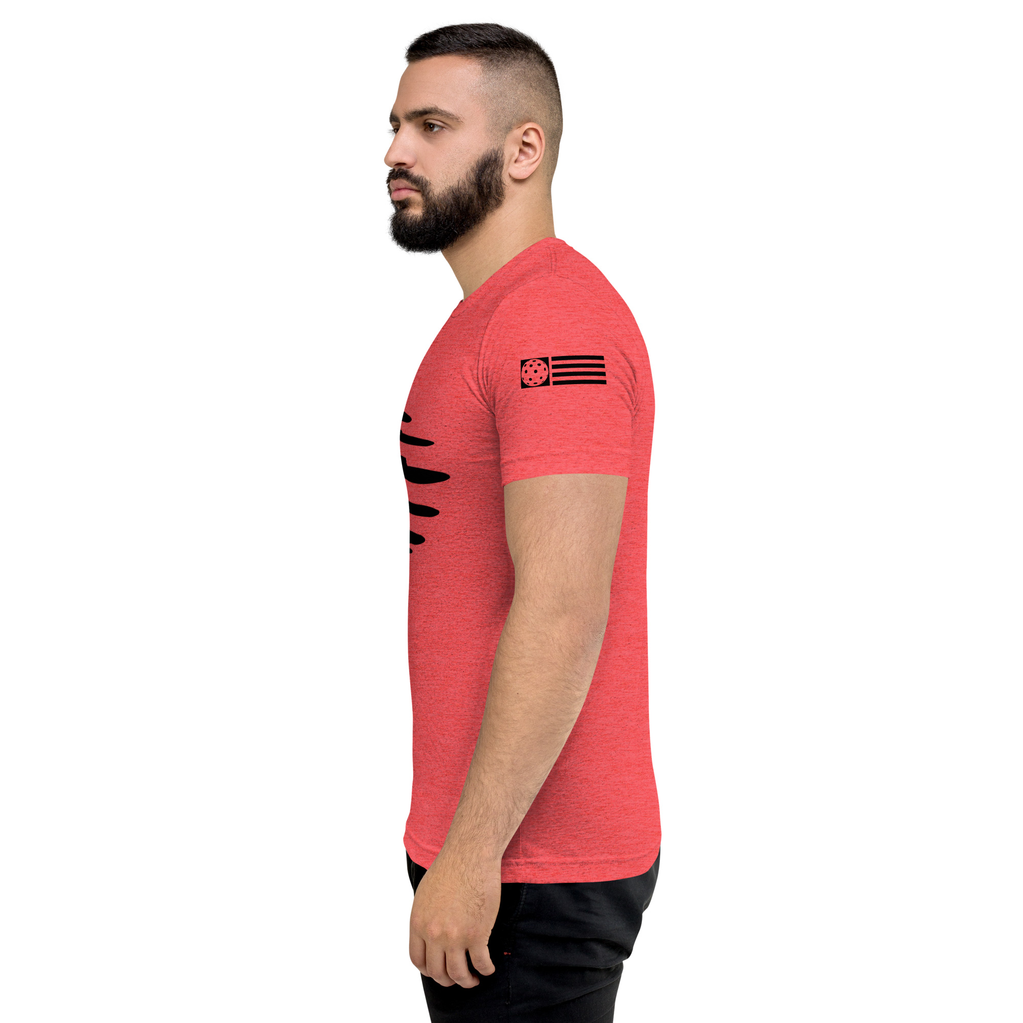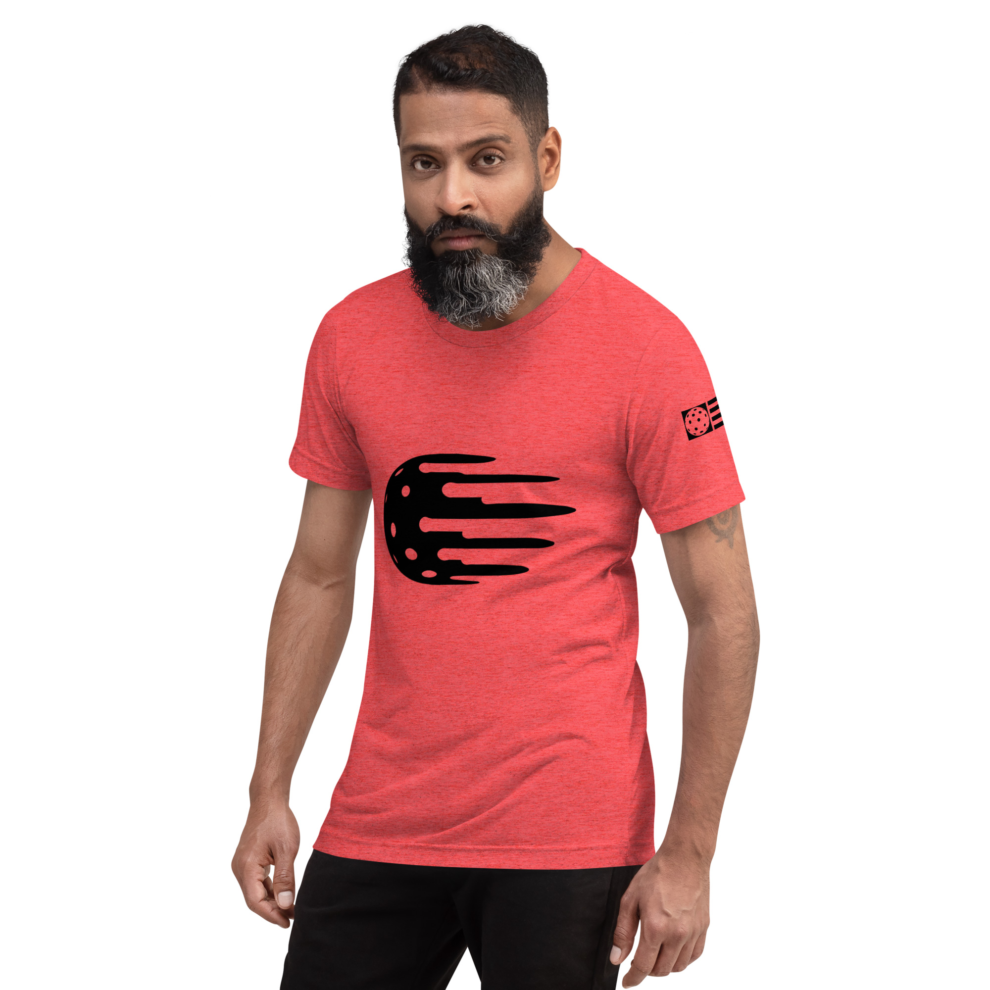 Men's Heather Red t-shirt, Black logo feels soft and light with just the right amount of stretch.