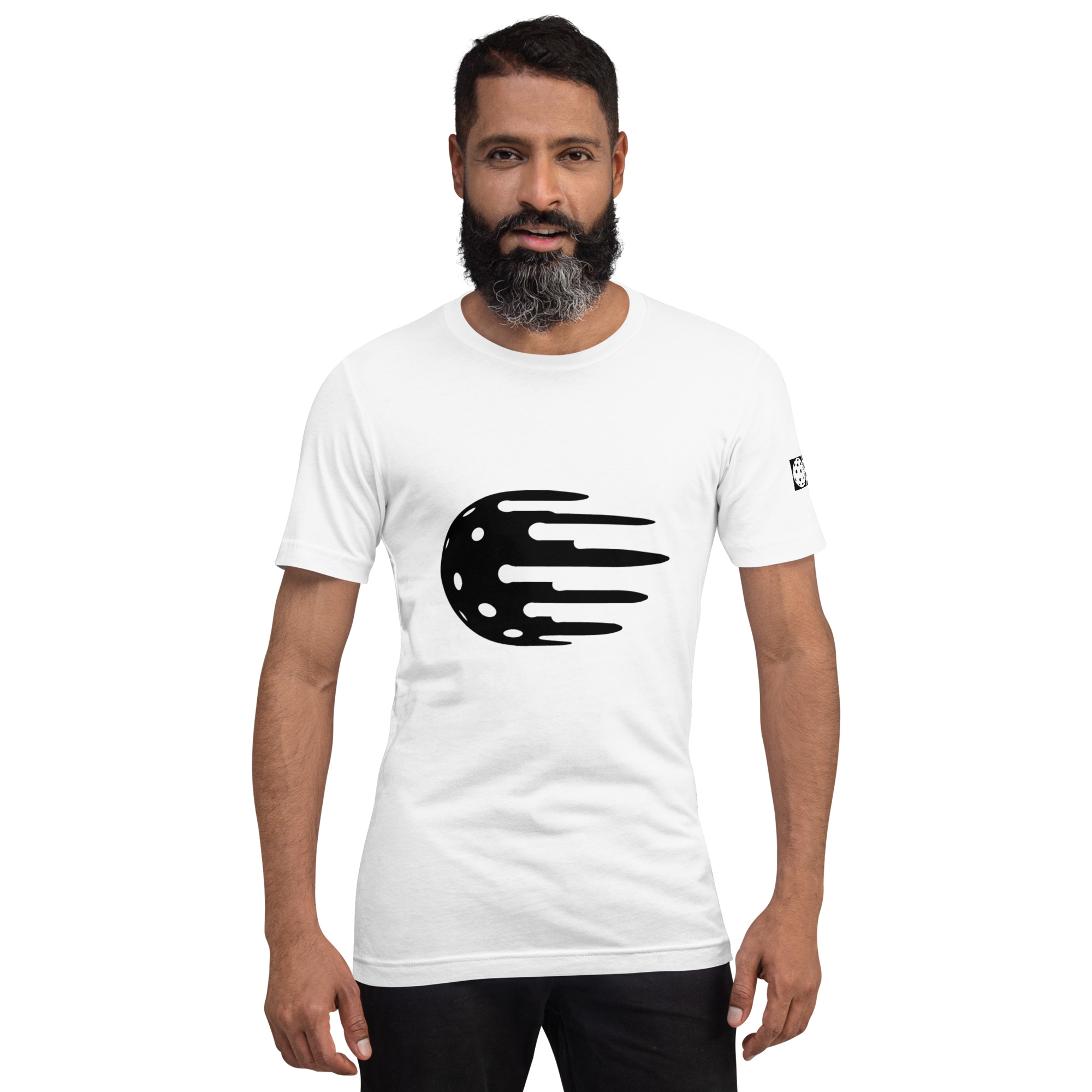 Men's white t-shirt, black logo feels soft and light with just the right amount of stretch.